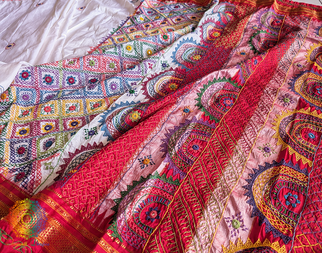 Lambada or Lambani embroidery is an art of embellishing clothes practiced by the Lambadas or Lambanis, the tribe in SanduruKarnataka. Lambada embroidery uses a combination of stitches and appliqué, along with mirror work and other embellishments. Tribal women use coins, shells, buttons, cowries and small pieces of mirrors to decorate their colorful clothing. The motifs are mainly geometrical with grid like patterns. Plus, the Sandur Lambani embroidery has now found a place in the products with the Geographical indication (GI) tag.