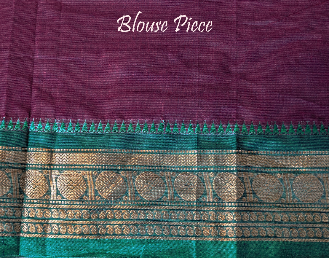 This Wine Pure Kanchi Cotton Saree is handwoven in the heritage looms of Tamil Nadu, blending the beauty of simplicity with the richness of South Indian craftsmanship.