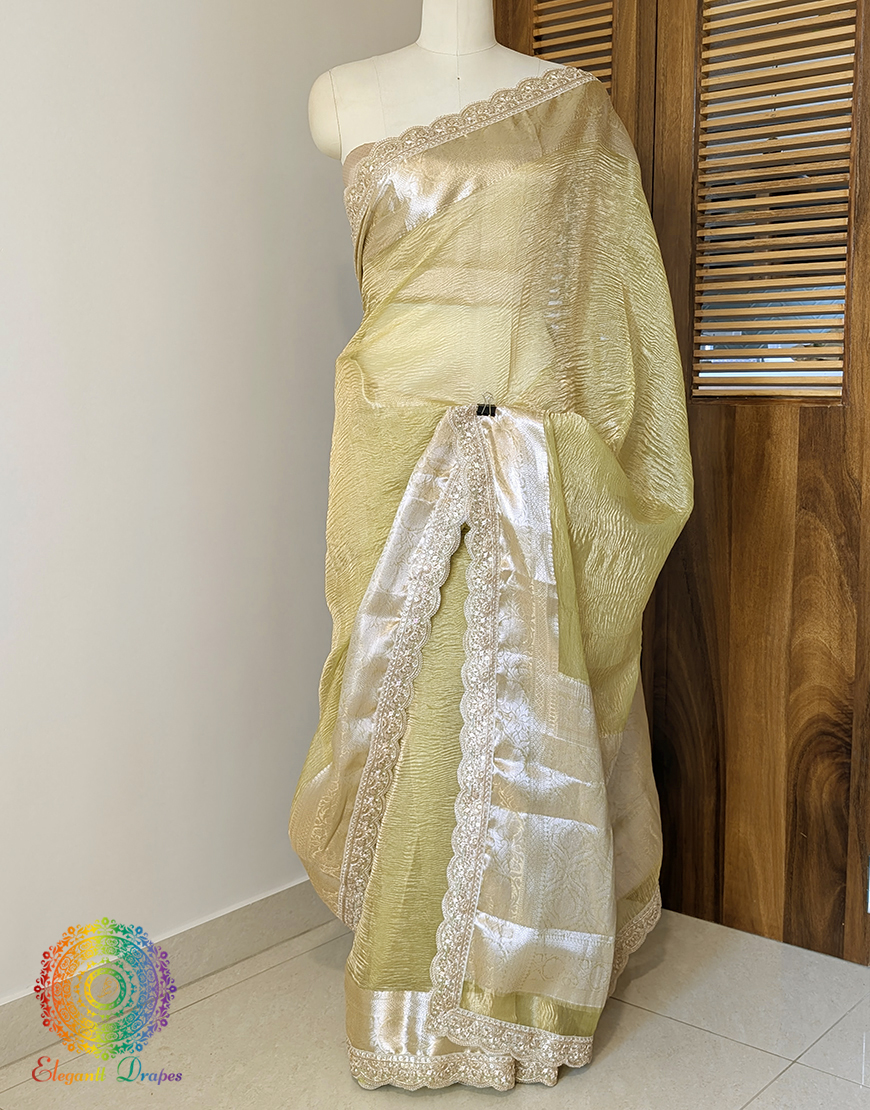 Yellow Pure Banarasi Crushed Tissue Silk Saree