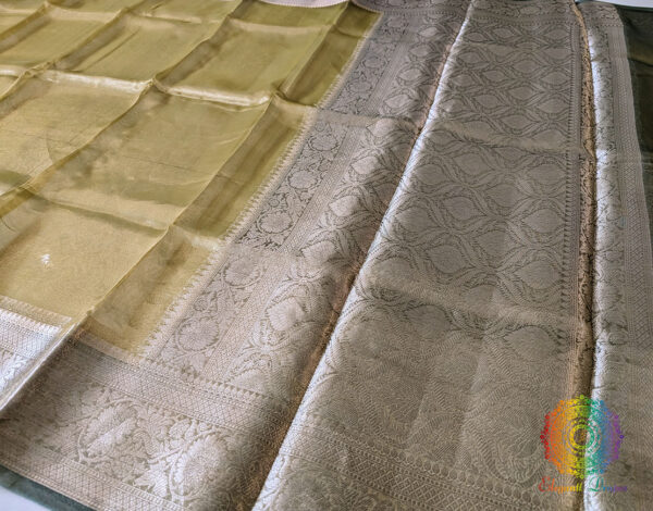 This is a gorgeous, lustrous and chic saree. Thus here we bring  to you a Yellow Pure Banarasi Tissue Silk Saree. Moreover the fabric is pure tissue. Thus we would say a not to be missed saree.
